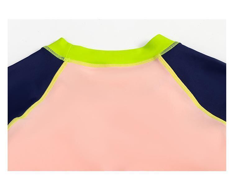 水着 ジュニア 女の子 長袖 長ズボン 速乾 UVカット セパレート 3点セット プール 海 スイムウェア マリンテイスト 高伸縮性 ピンク シンプル 春夏 ナイロン ポリエステル