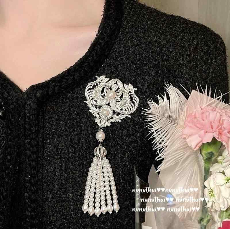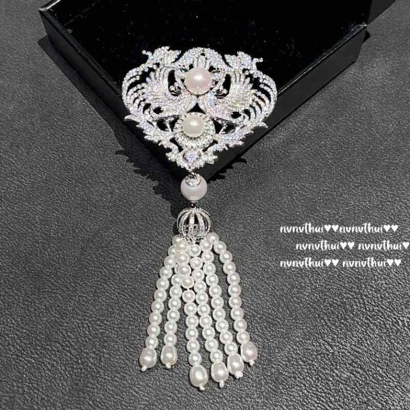 ブローチ パール レディース セレモニー コンサート 結婚式 贈り物 おしゃれ 胸飾り 高級感 アンティーク調 18金仕上げ 鳳凰 椿モチーフ 宝石 宝飾 パール 貝 ジルコニア タッセル