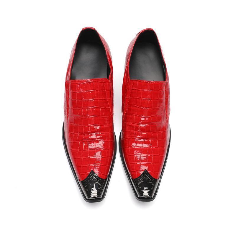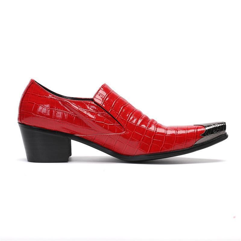 革靴 メンズ 通気性 ポインテッドトゥ スリッポン 本革 牛革 シークレットヒール ヒールアップ ビジネス カジュアル フォーマル 英国風 韓国風 レッド エナメル メタルパーツ ラバーソール