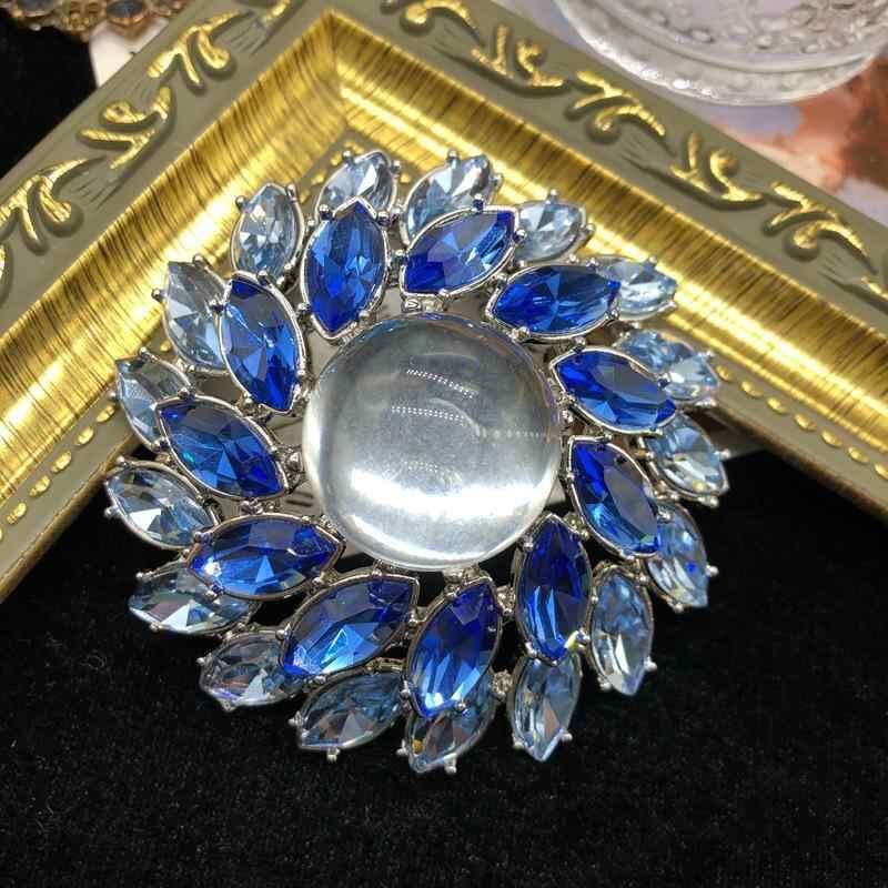 ブローチ レディース グラデーション サファイアカラー ガラス製 高級感 透かし彫り ヴィンテージ風 ジルコニア 幾何学モチーフ パーティー 結婚式 フォーマル 普段使い アクセント ブルー グリーン