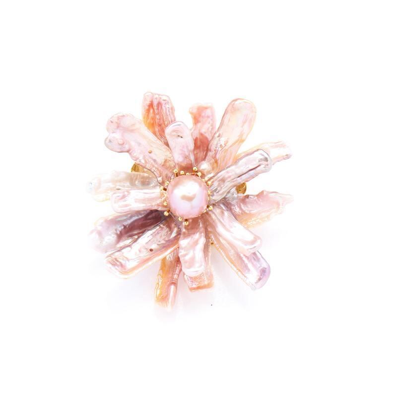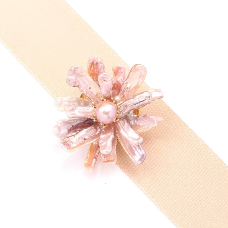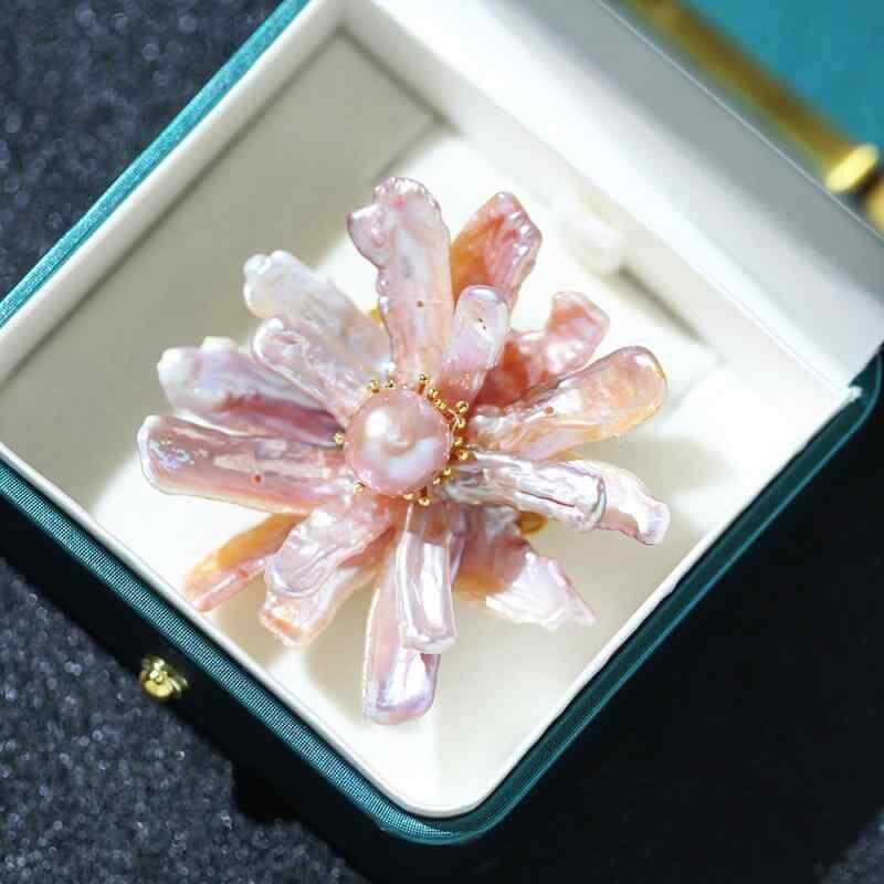ブローチ パール レディース セレモニー コンサート 結婚式 贈り物 おしゃれ 胸飾り 高級感 女性用 紫 バロック パール 花 花びら 多層 コサージュ 金メッキ 軽やか 上品