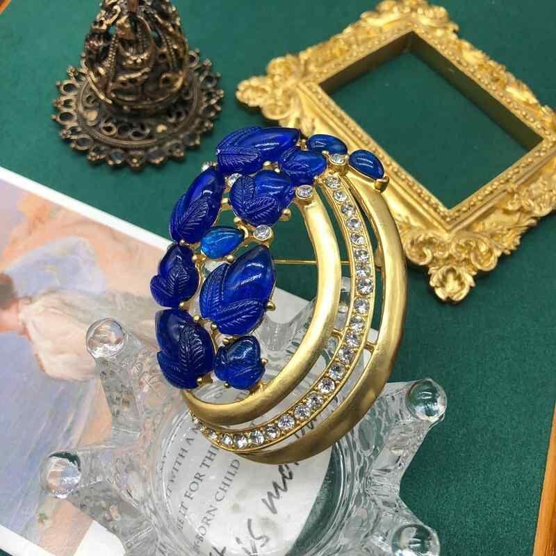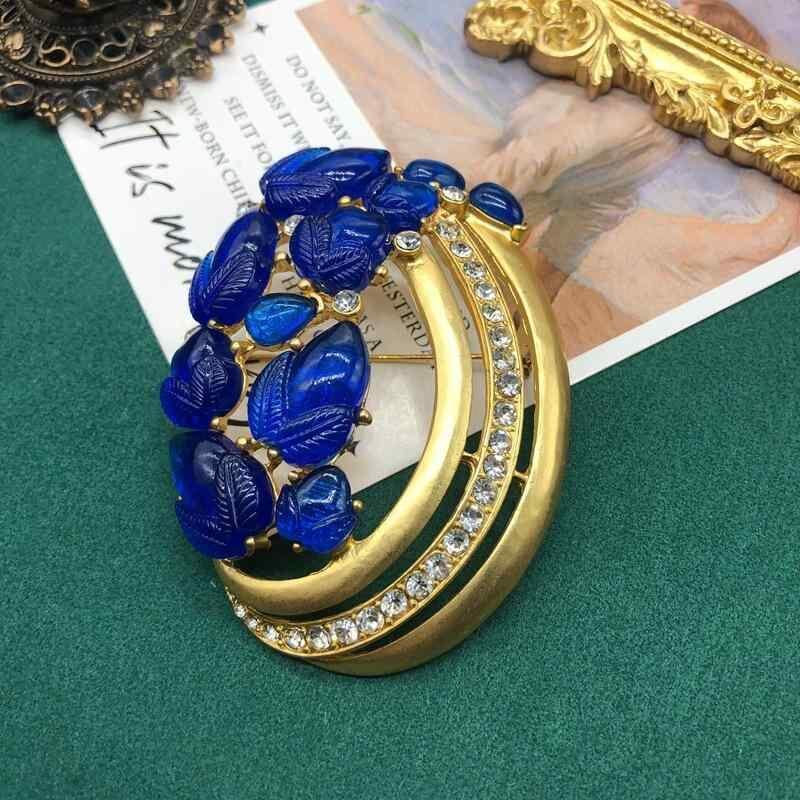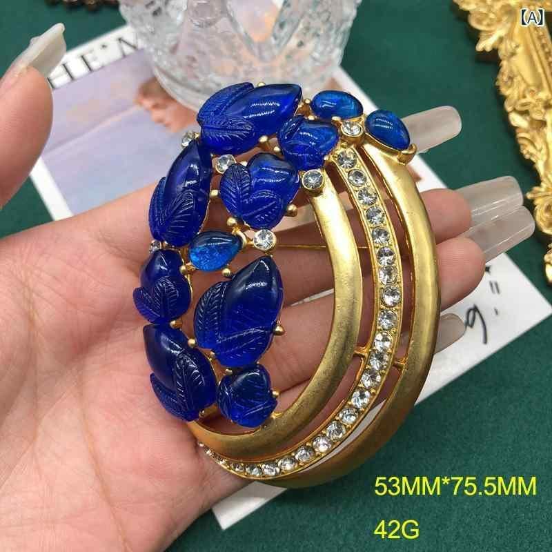 ブローチ レディース レトロ ヴィンテージ 重厚感 ジルコニア装飾 透かし彫り デザイン性 ユニーク 幾何学型 エレガントブルー 上品 高級感 合金製 多機能 結婚式 記念日 ギフト 春夏