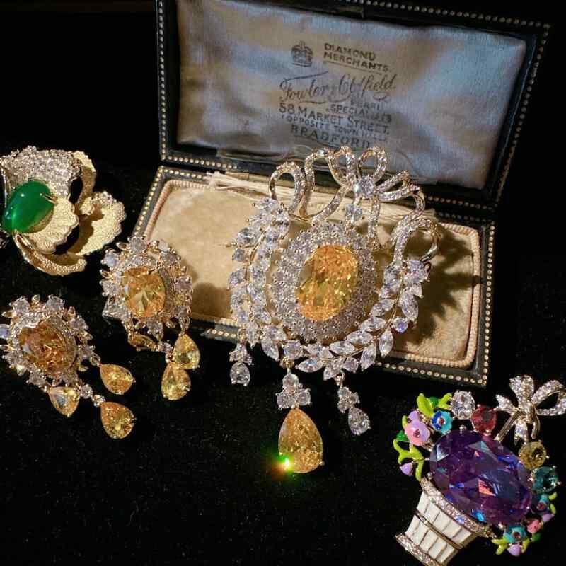・カテゴリ: ブローチ・素材: ジルコン・デザイン: 花柄・加工: ラインストーン装飾・スタイル: フレンチレトロ・スタイル分類: 文芸レトロ・モチーフ: 雪、しずく・カラー展開: イエロー、パープル、グリーン、ゴールド・対象: 女性