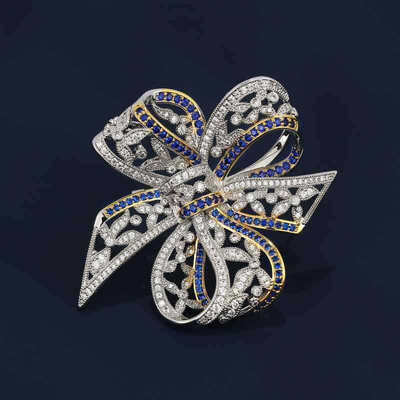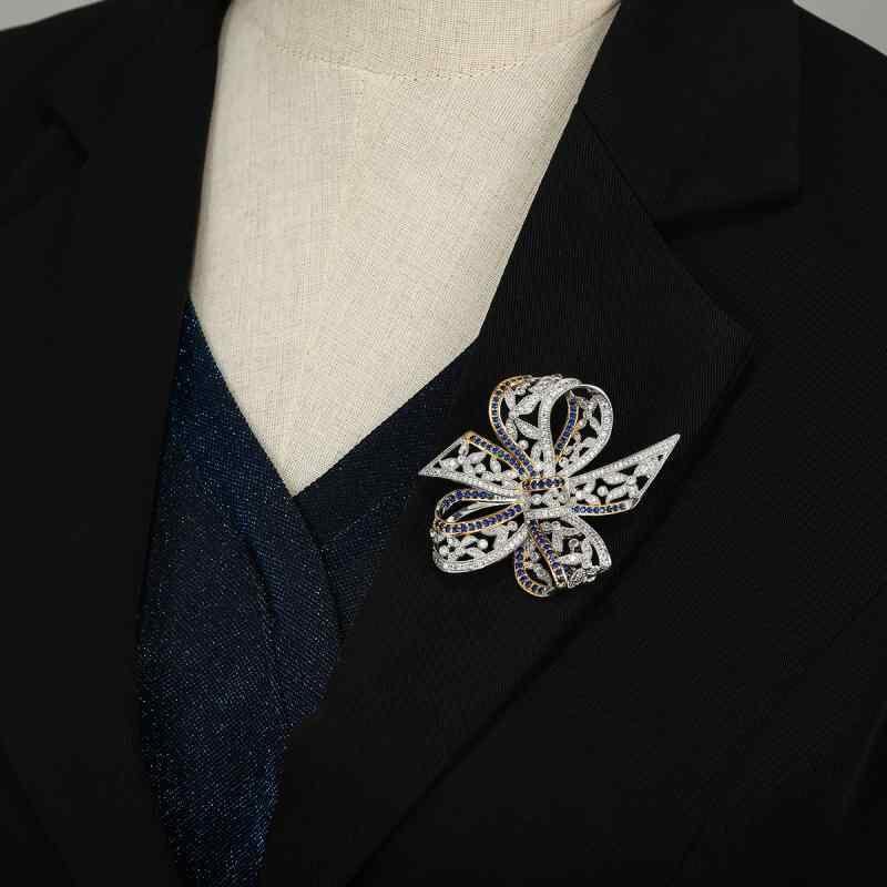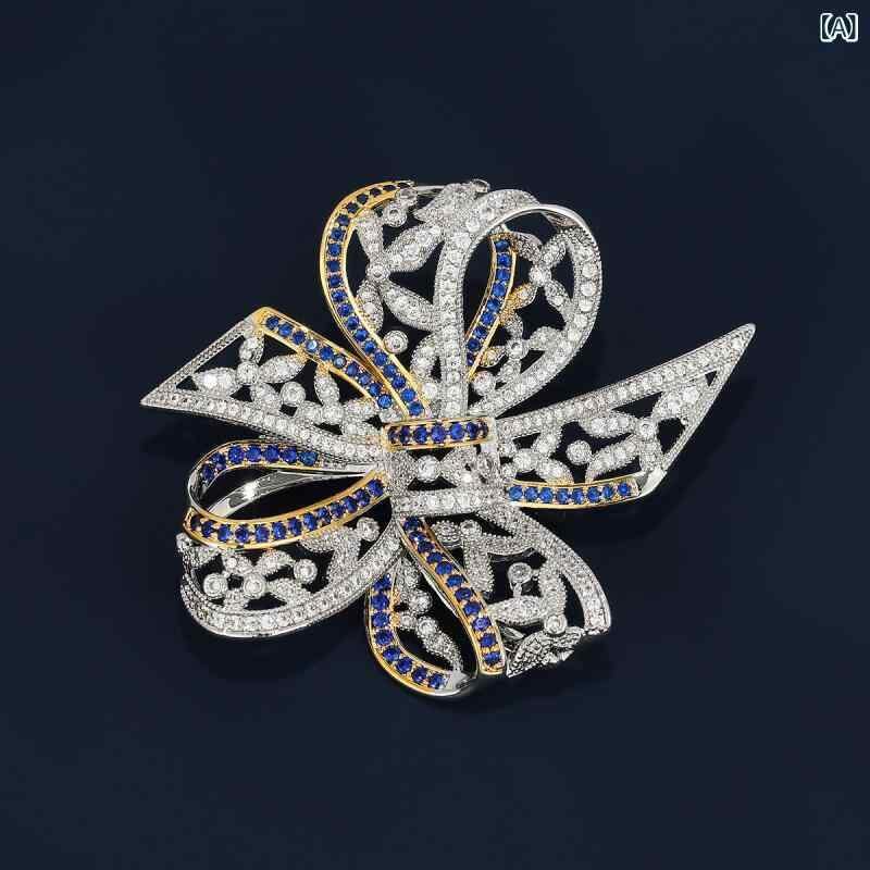 ブローチ レディース 女性用 韓国風 レトロ アンティーク リボン ジルコニア 花 フラワー 高級感 豪華 上品 繊細 銅製 ファッション アクセサリー 通勤 オフィス カジュアル