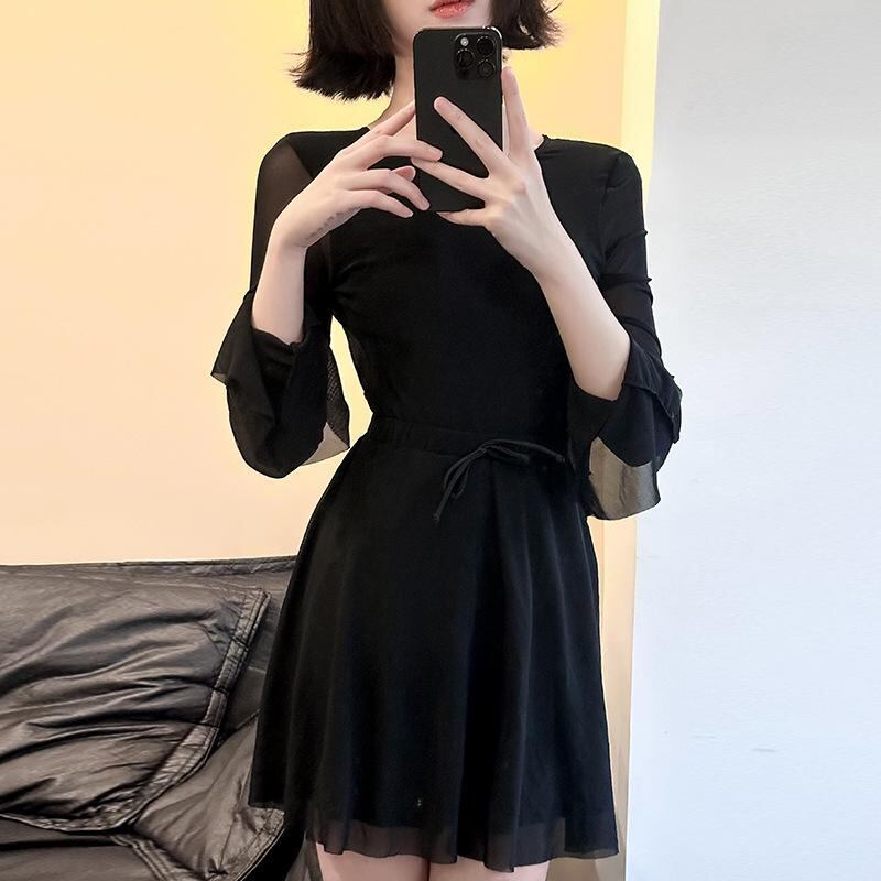 ワンピース水着 レディース 長袖 バックオープン セクシー ブラック ポリエステル 温泉 リゾート ビーチ プール 海水浴 マリンスポーツ 体型カバー 日焼け防止