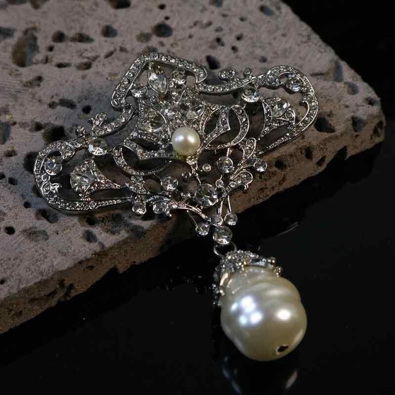 ブローチ パール レディース セレモニー コンサート 結婚式 贈り物 おしゃれ 胸飾り 高級感 上品 エレガント 英国風 ブリティッシュスタイル レトロ クラシック 水晶 養殖パール 養殖 コート アウター用 アクセサリー 小物 個性的 装飾品