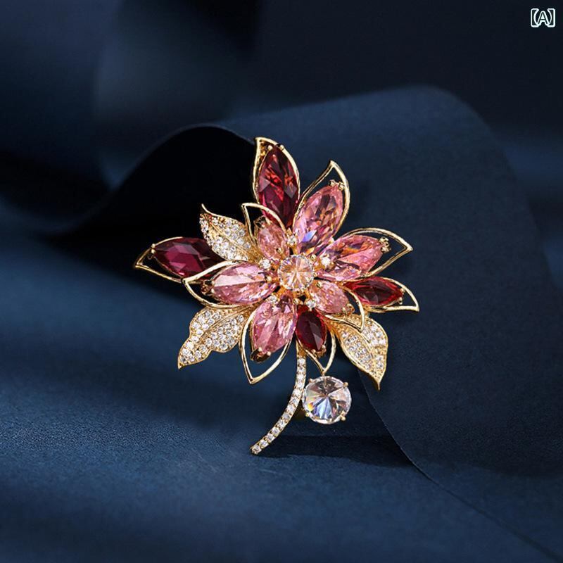 ブローチ レディース 高級感 上品 花 フラワー コサージュ レトロ アンティーク スーツ カーディガン 多用途 2WAY アクセサリー 銅 ジルコニア ゴールド ピンク イエロー マルチカラー ホワイト