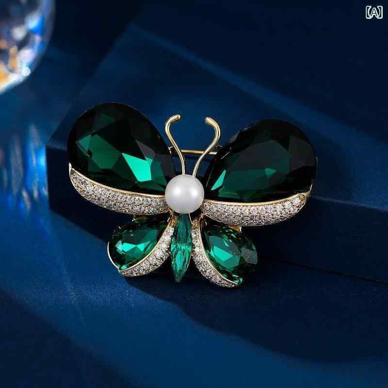 ブローチ レディース 秋冬 コート アウター アクセサリー 多用途 ずり落ち防止 ウエスト調整ピン 昆虫 動物 蝶 銅製 クリスタル装飾 緑 紫 青 レトロ ヴィンテージ