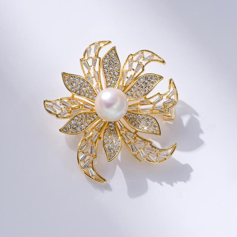 ブローチ パール レディース セレモニー コンサート 結婚式 贈り物 おしゃれ 胸飾り 高級感 パール 精巧 風車モチーフ 花 襟元 アクセサリー