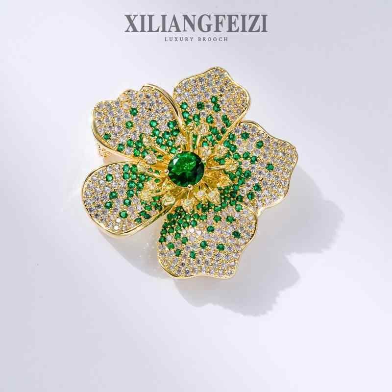 ブローチ 男女兼用 高級感 精巧 マイクロセッティング ジルコニア 牡丹 花 フラワーモチーフ 豪華 エレガント パーティー フォーマル ドレスアップ 礼服 銅製 電気メッキ加工