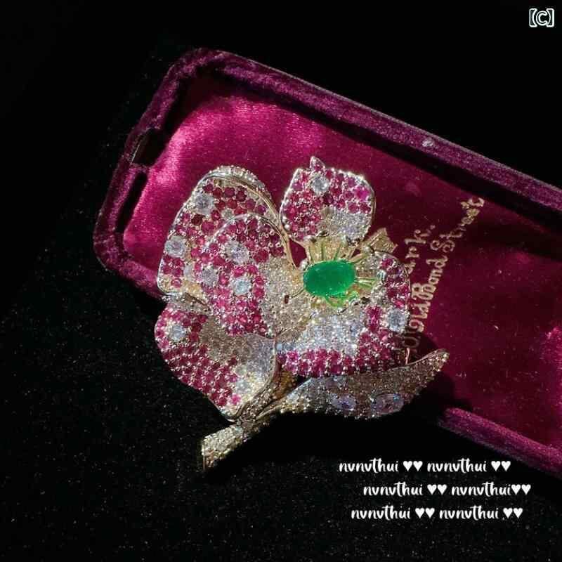 ブローチ レディース フレンチレトロ ヴィンテージ ボルドーローズ フラワー ジルコニア 18KGP リボン エレガント 華やか フォーマル 結婚式 パーティー ギフト 秋冬