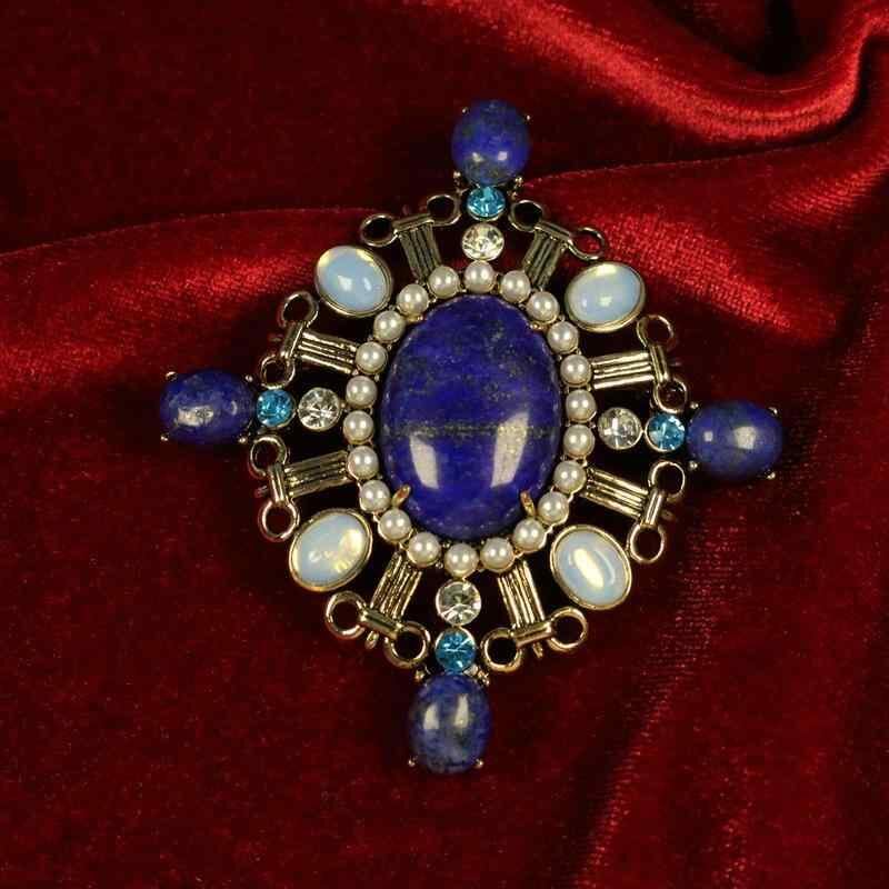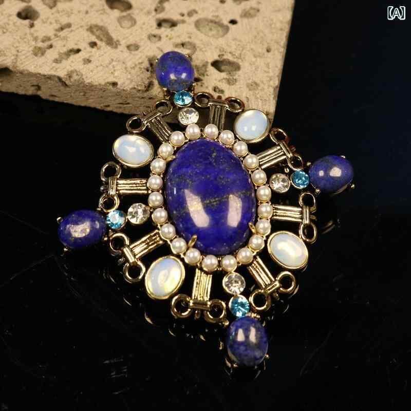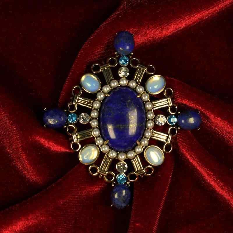 ブローチ レディース 宮廷風 重厚感 幾何学 楕円 ひし形 ラピスラズリ ラインストーン 亜鉛合金 電気メッキ加工 個性的 エレガント ヴィンテージ アクセサリー フォーマル パーティー