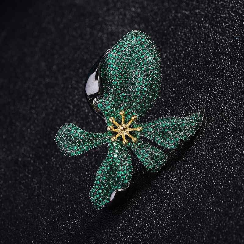 ブローチ レディース 高級感 フラワーモチーフ レトロ エレガント ジルコニア装飾 銅製 ガンメタリック パープル グリーン コサージュ アクセサリー 普段使い フォーマル