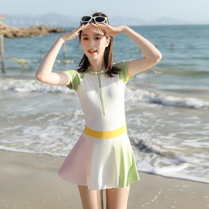 水着 女の子 キッズ ジュニア スカート付き ワンピース 温泉 プール 夏 海水浴 リゾート ナイロン ポリエステル イエロー グリーン
