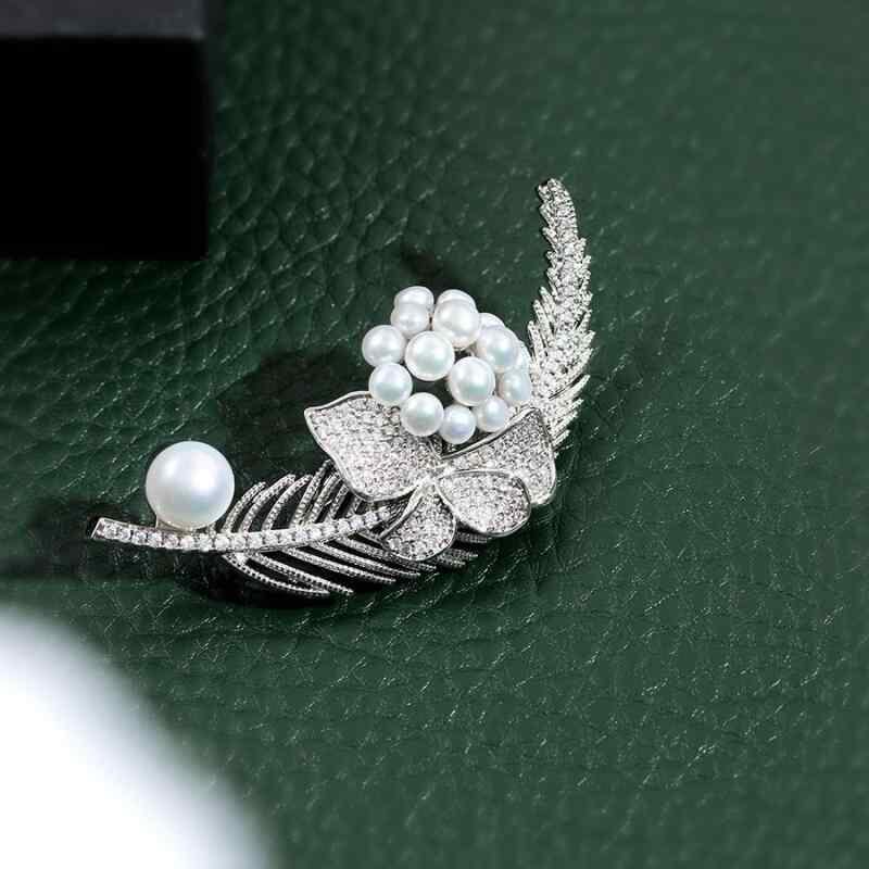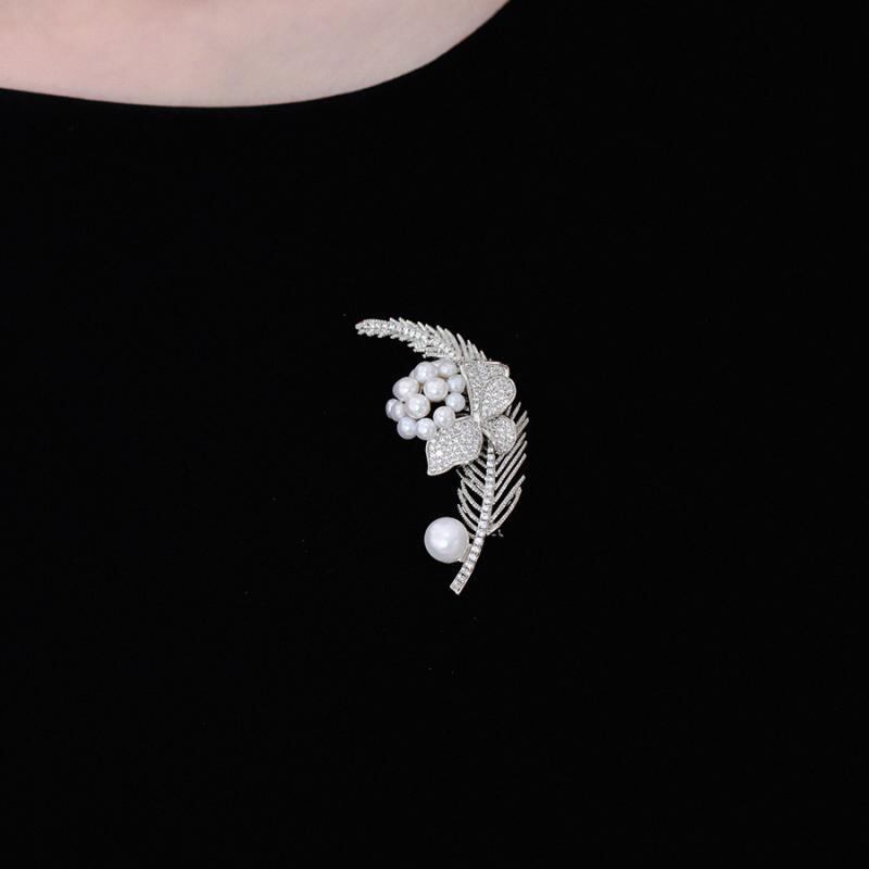 ブローチ レディース 羽根 フェザー パール パール ゴールドカラー 金メッキ はだけ防止 胸元カバー 個性的 ユニークデザイン 上品 エレガント フォーマル 結婚式 入学式 卒業式 パーティー オフィス カジュアル 万能