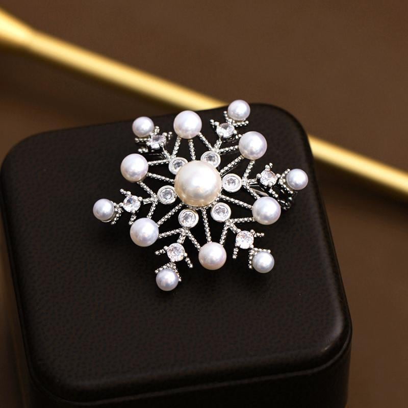 ブローチ 淡水パール レディース セレモニー フォーマル 入学式 おしゃれ 胸飾り 高級感 冬 秋向け な 雪の結晶 ピン コート ジャケット スーツ アウター