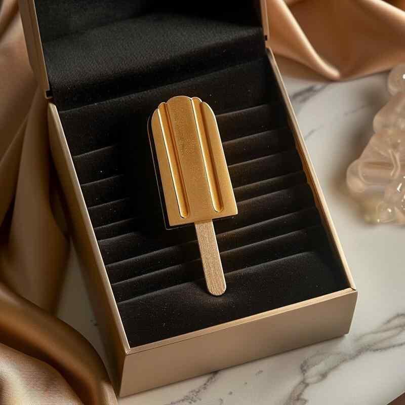 ブローチ レディース 高級感 レトロ アイスキャンディ モチーフ 本金メッキ 銅製 電気メッキ加工 オリジナルデザイン 上品 エレガント おしゃれ ファッション小物 記念品 プレゼント パーティー お出かけ