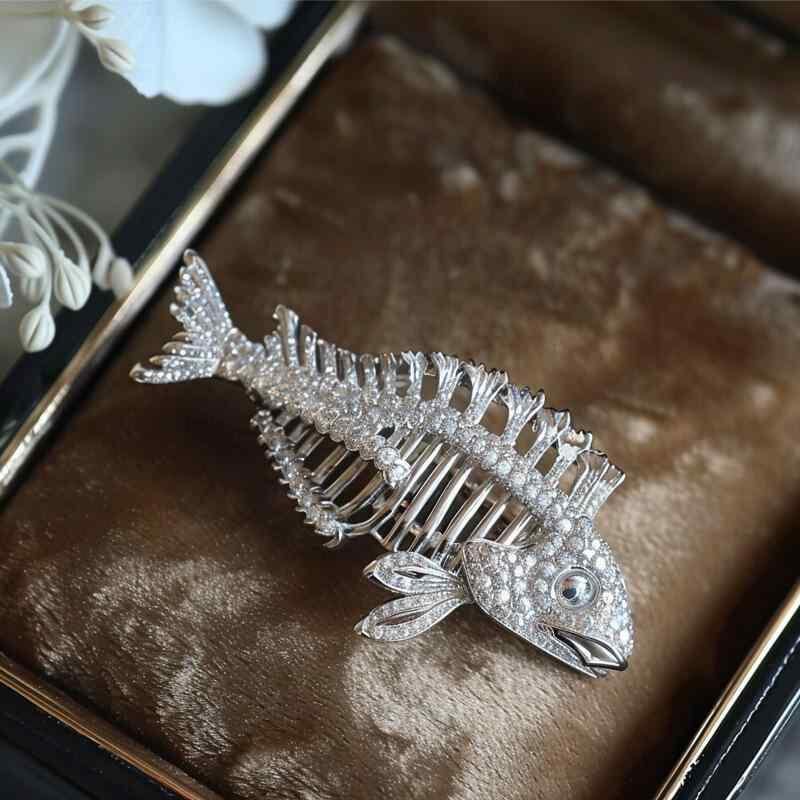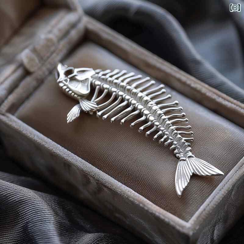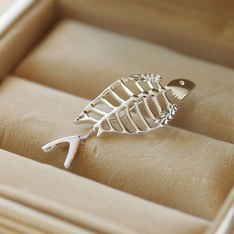ブローチ レディース アンティーク 魚の骨 骨モチーフ アクセサリー 銅製 電気メッキ加工 記念品 装飾品 贈答用 高級感 オリジナルデザイン 自然モチーフ