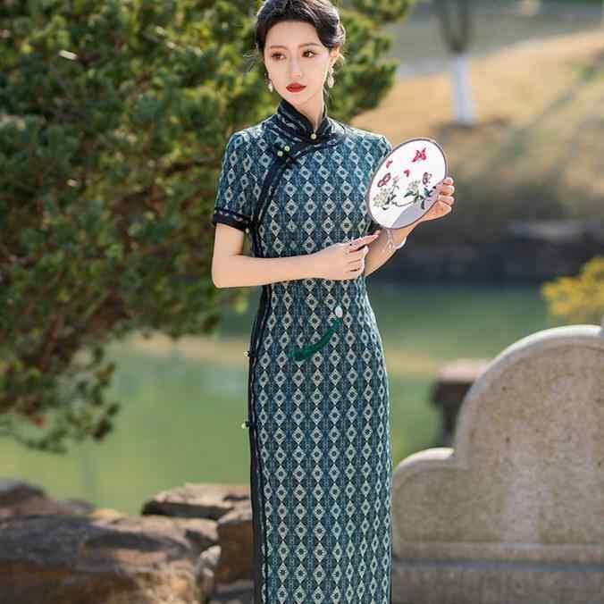 ・カテゴリ: チャイナドレス・スタイル: 文芸レトロ・主な素材: ポリエステル70-80%、スパンデックス30%以下・素材感: フェイクシルク・ネックライン: スタンドカラー・襟の合わせ: 斜め合わせ・袖丈: 三分袖・袖のタイプ: レギュラー・着丈: ロング丈・スリット: 低スリット・デザイン: ジッパー・加工: パイピング・伸縮性: 微ストレッチ・対象: レディース・対象年齢: 成人・サイズ展開: M, L, XL, XXL, XXXL, XXXXL