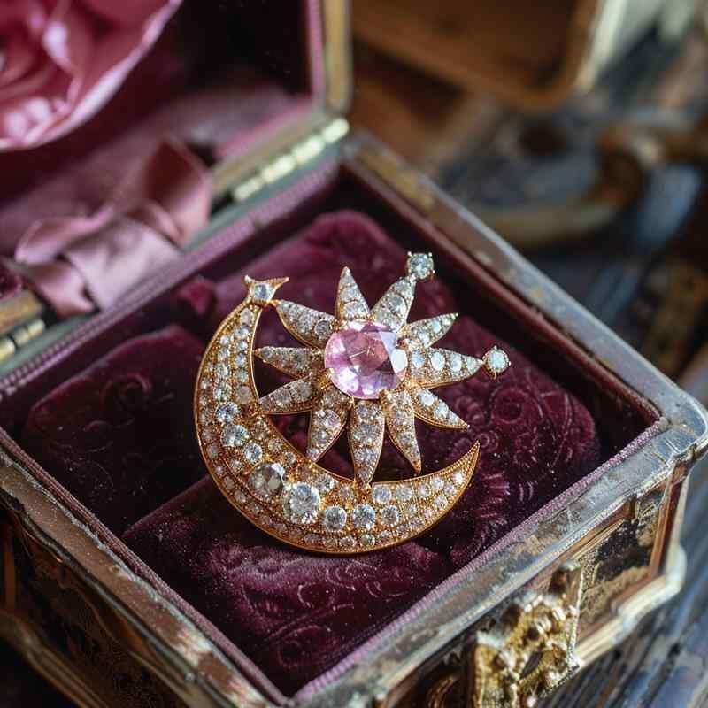 ブローチ レディース 女性用 フレンチスタイル 高級感 ジルコニア 月 ムーン エレガント 上品 デザイン 個性的 銅製 フォーマル お出かけ 秋冬