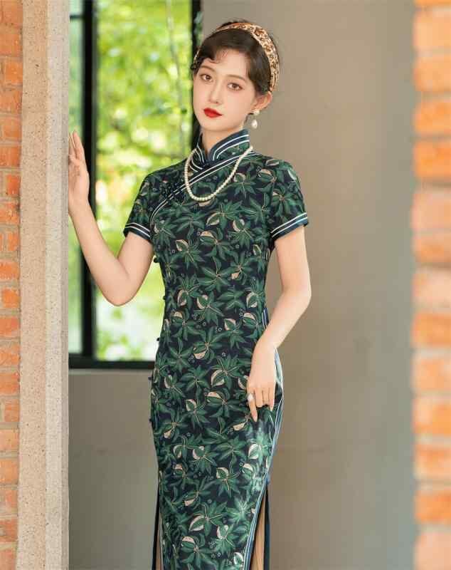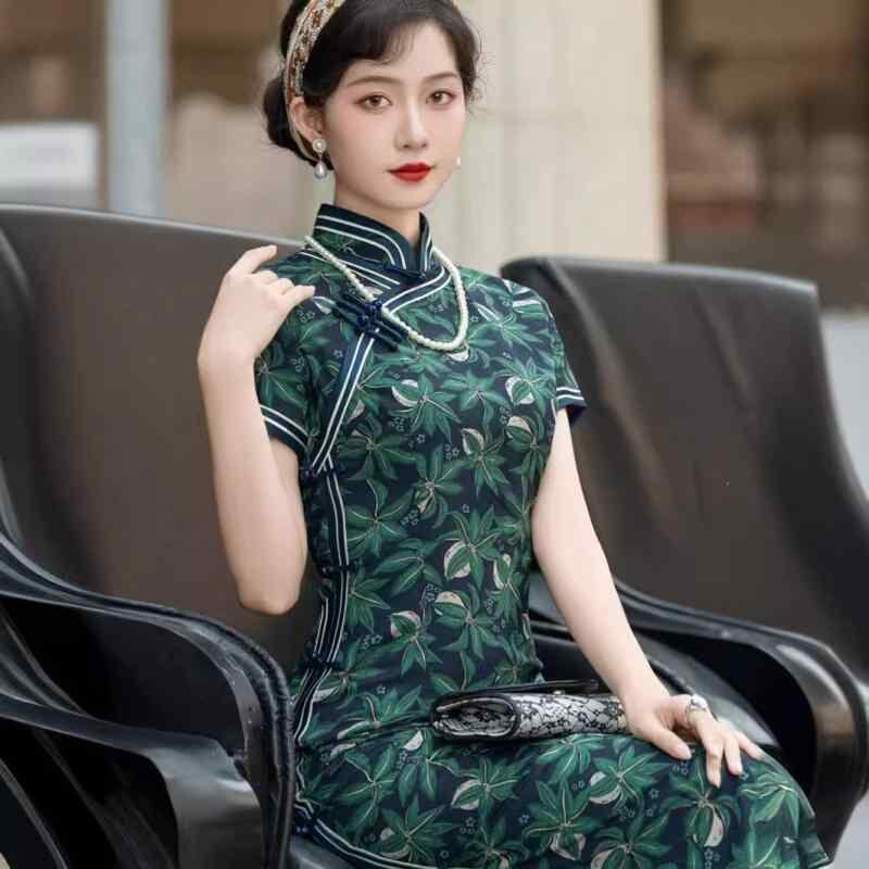 チャイナドレス レディース 春夏 新チャイナ風 レトロ 中華風 普段使い ハイウエスト 細見え 上品 エレガント ロング丈 半袖 スタンドカラー スリット ワンピース