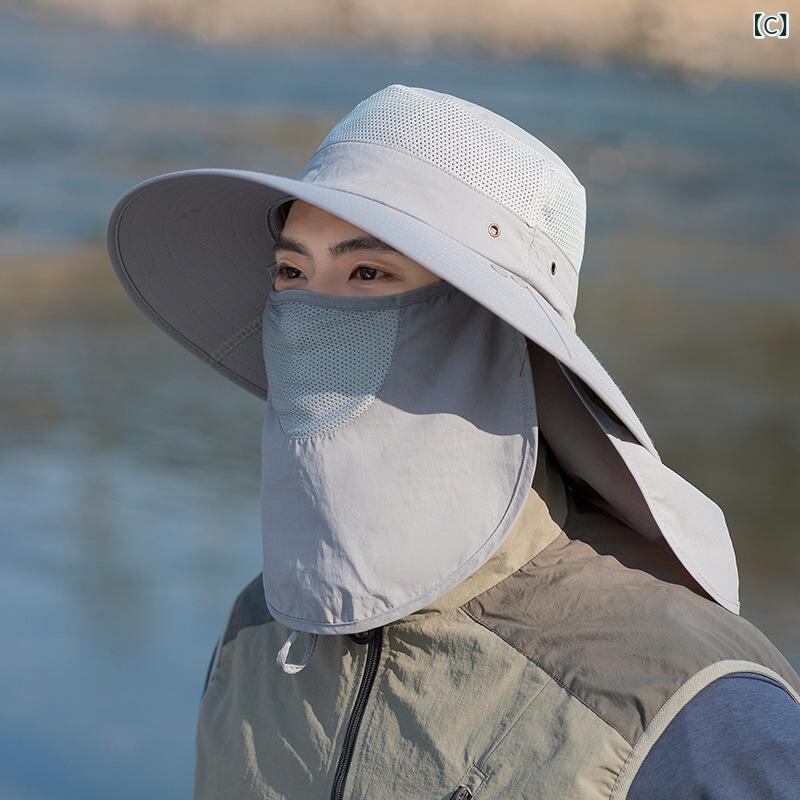 サンハット アウトドア 野外 日よけ 帽子 メンズ 日焼け対策 フィッシャーマンハット 男性用 夏 多機能 マスク 顔 ネックガード ハイキング 登山 通気性 速乾