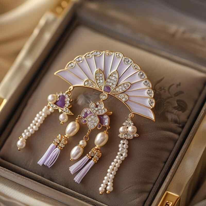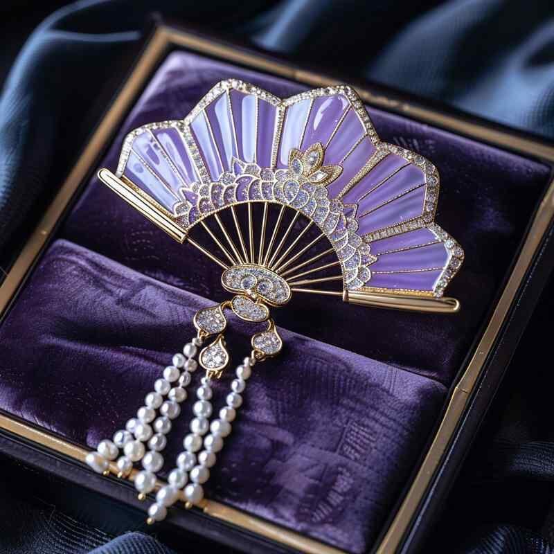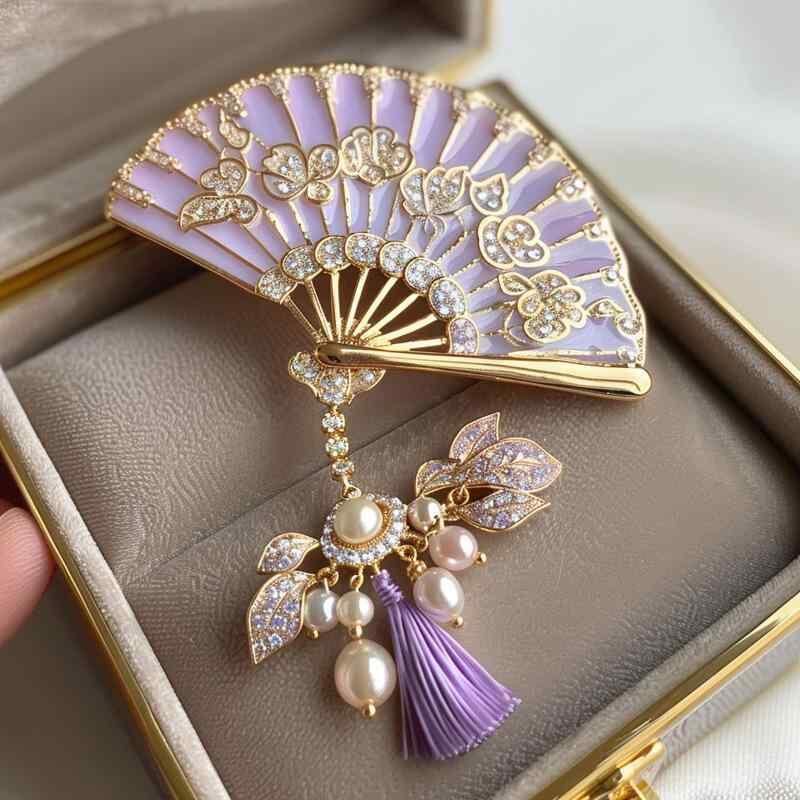 ブローチ パール レディース セレモニー コンサート 結婚式 贈り物 おしゃれ 胸飾り 高級感 扇子 胸針 エナメル 彩 流蘇 和風 旗袍