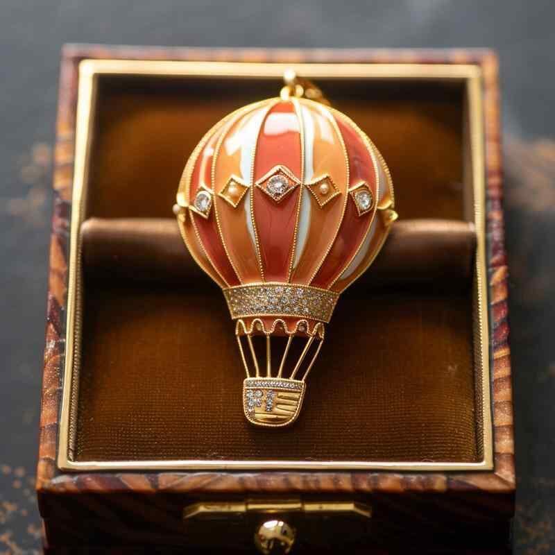 ブローチ レディース 熱気球 オリジナルデザイン マイクロインレイ 電気メッキ加工 銅製 ファッション小物 ジュエリー アクセサリー 高級感 ギフト プレゼント 秋冬