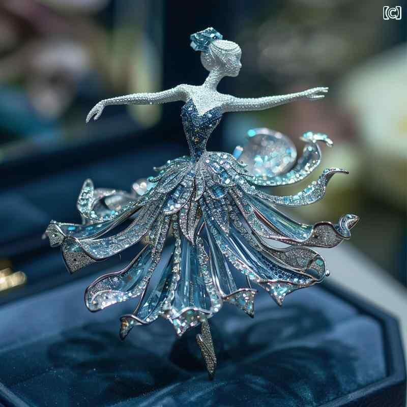 ブローチ 男女兼用 バレエダンサー キャラクターモチーフ 豪華 高級感 ライトラグジュアリー 銅製 ストーン装飾 ブルー 春夏 多機能 ファッション小物 ギフト アクセサリー