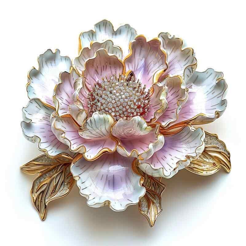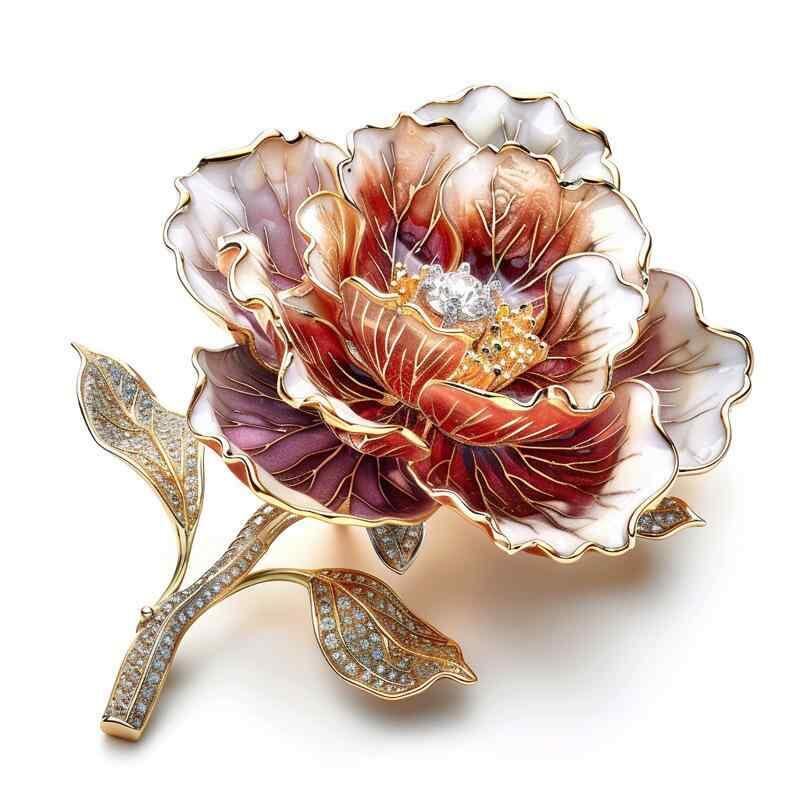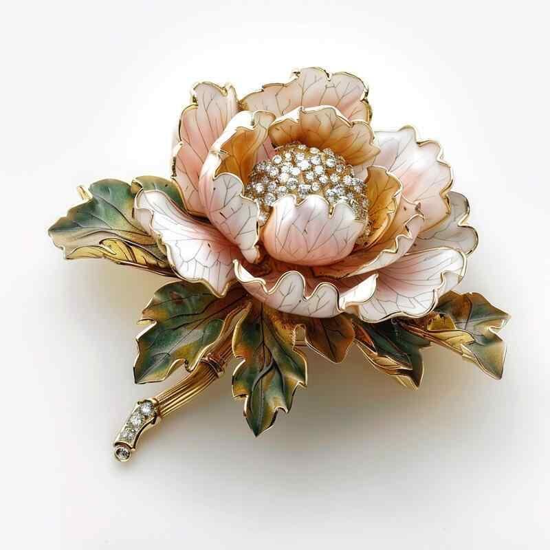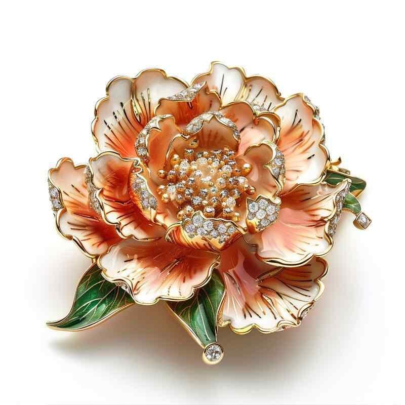 ブローチ レディース 田園風 森系 芍薬 牡丹 花 高級感 ハンドメイド エナメル彩 グラデーション オレンジ ピンク 合金製 清楚 フェミニン