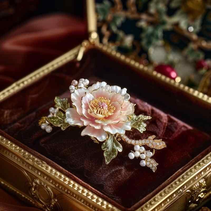 ブローチ レディース 牡丹 花 銅製 マイクロセッティング 精巧デザイン 高級感 豪華 エレガント 上品 華やか きらめき ジュエリー アクセサリー フォーマル ドレスアップ パーティー