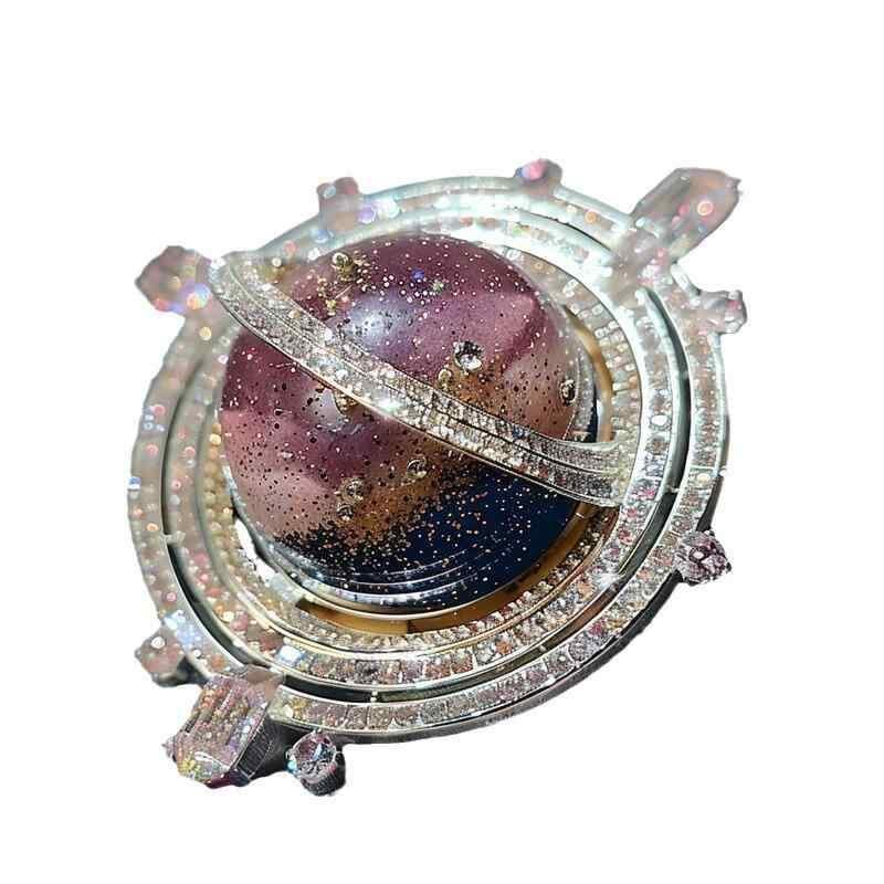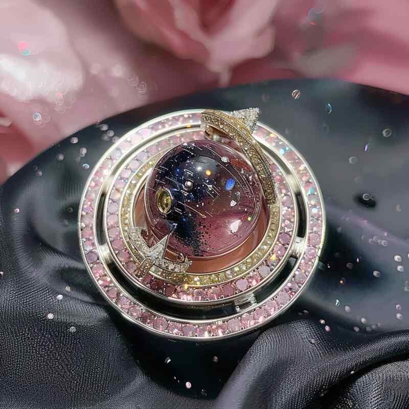 ブローチ 男女兼用 ピンク 惑星モチーフ 電気メッキ加工 銅製 高級感 ライトラグジュアリー ユニーク 精巧 繊細 上品 ピンブローチ 胸元アクセサリー 通勤 普段使い 秋冬 ファッション小物