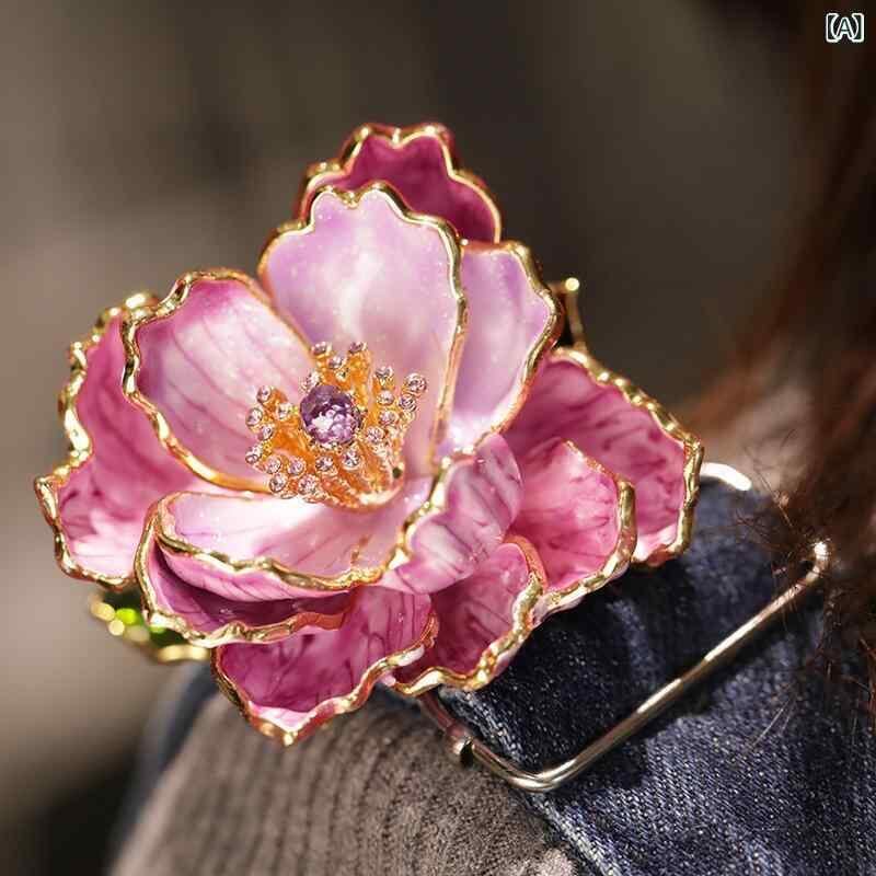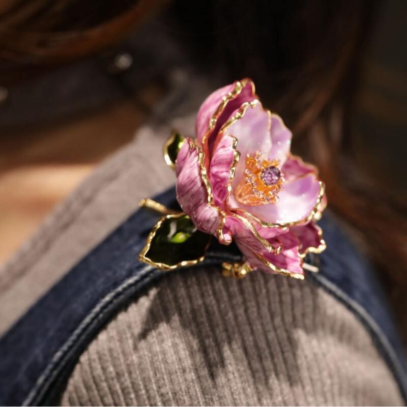 ブローチ レディース 高級感 オートクチュールデザイン シャクヤク 牡丹 エナメル加工 多層デザイン 銅製 紫色 フラワーモチーフ フォーマル 通勤 プレゼント ギフト