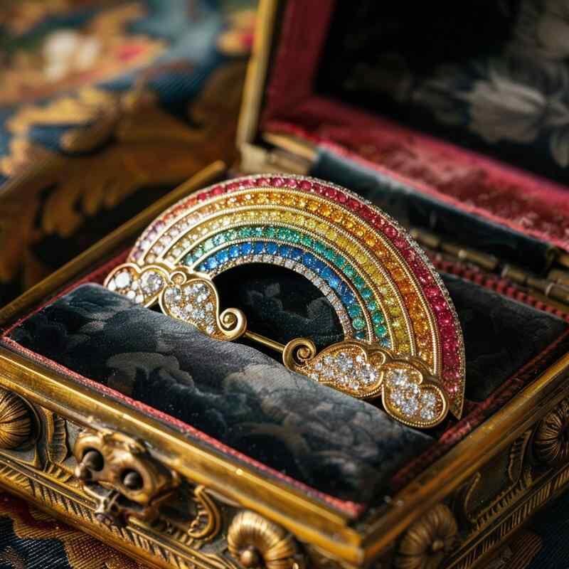 ブローチ 男女兼用 高級感 繊細 銅製 ジルコニア プリンセス風 虹 雲 モチーフ デザイン マイクロセッティング ライトラグジュアリー ピンブローチ