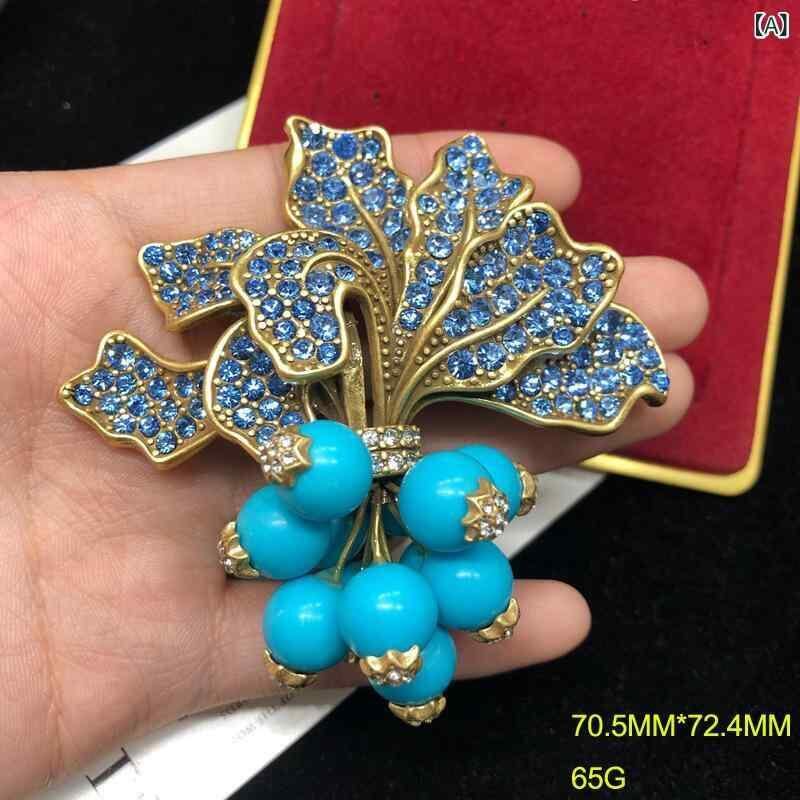 ブローチ レディース 個性的 おしゃれ 銅製 レトロ ゴールド 高級感 ブルー ターコイズ ジルコニア 大根モチーフ エレガント 万能 ピン