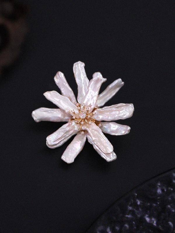 ブローチ パール レディース セレモニー コンサート 結婚式 贈り物 おしゃれ 胸飾り 高級感 バロック パール 花 コサージュ スーツ フォーマル