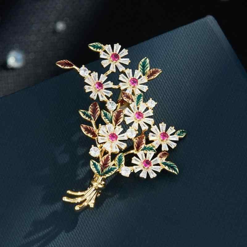 ブローチ レディース ファッション エレガント 花束 ライトラグジュアリー 高級感 マイクロパヴェ ジルコニア エナメル 花モチーフ 通勤 秋冬 銅製 コサージュ
