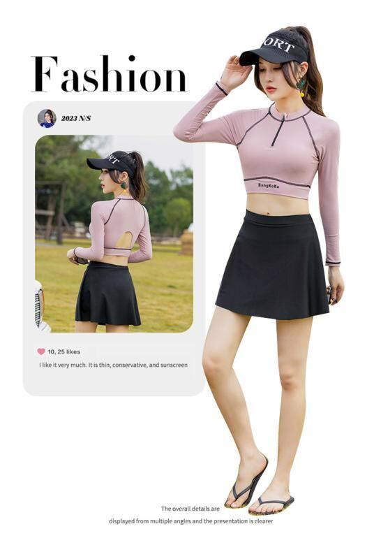 水着 レディース 韓国風 セパレート 長袖トップス ショートパンツ スカート 体型カバー 着痩せ バストアップ パッド入り ノンワイヤー ハイウエスト ナイロン ポリエステル 春夏