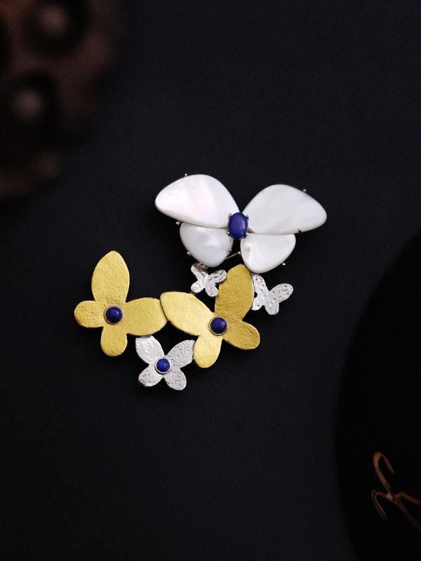 ブローチ ユニセックス 高級感 おしゃれ 蝶々 スーツ コート アウター ウール メルトン アクセサリー 万能 普段使い 上品 エレガント 青金石 電気メッキ加工 春夏
