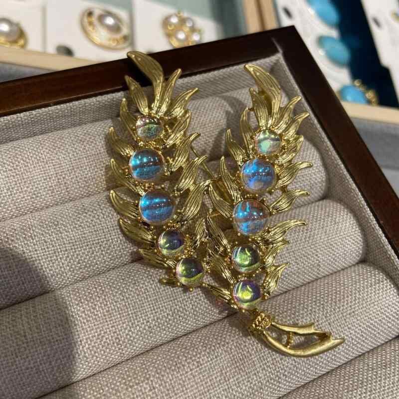 ブローチ レディース 麦の穂モチーフ カラフルガラス風 真鍮製 電気メッキ加工 ゴールド ピンブローチ 多用途 スーツアクセサリー ジャケットアクセ 普段使い フォーマル 結婚式 入学式 卒業式 ヴィンテージ風 ギフト