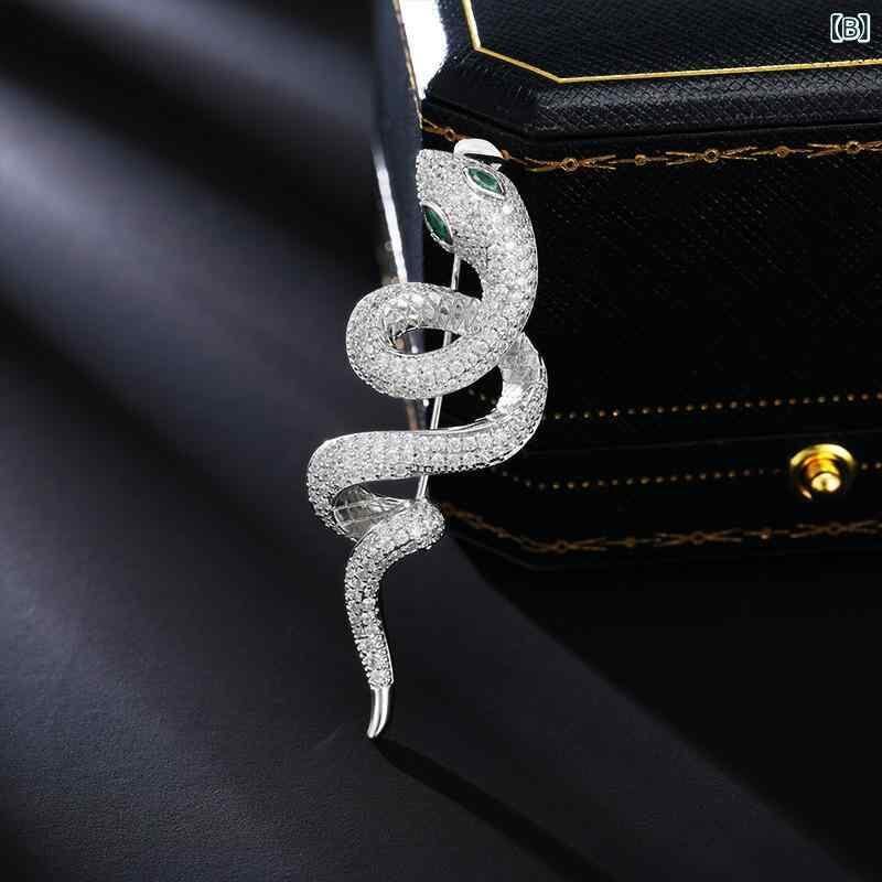ブローチ レディース 蛇モチーフ 個性的 ユニーク シンプル エレガント 高級感 精巧 上質 スーツスタイル オフィス フォーマル コサージュ ゴールド シルバー 銅製 動物デザイン