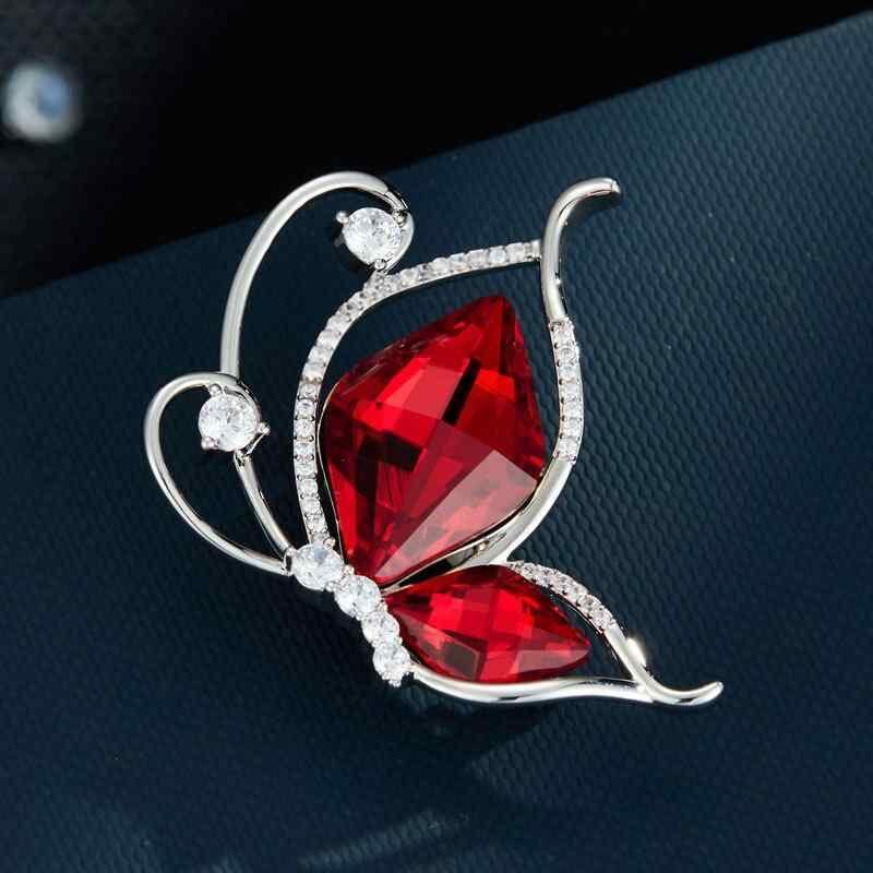 ブローチ レディース 蝶 昆虫モチーフ レッドクリスタル ジルコニア マイクロセッティング 銅製 電気メッキ加工 ファッション シンプル 上品 エレガント 多用途 秋冬