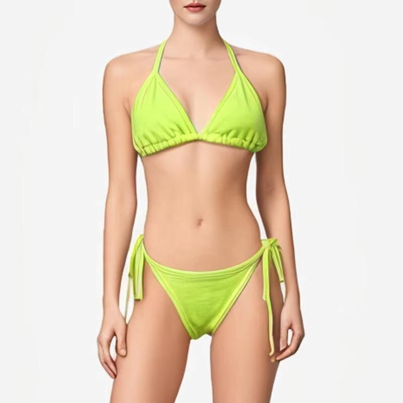 ビキニ レディース 大人用 セクシー 蓄光 発光 色変化 ナイロン 三角パンツ 胸パッド付き ワイヤーなし 水着 イエロー 春夏 ビーチ プール リゾート マリンスポーツ