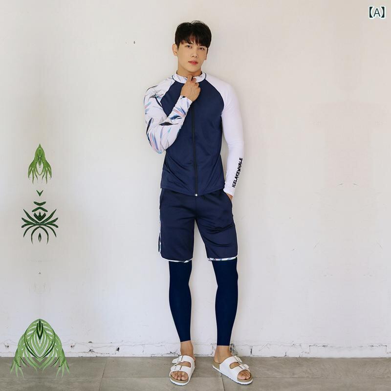 水着 ラッシュガード メンズ 男性用 3点セット スリーピース ファスナー 速乾 長袖 ロングパンツ スイムパンツ シュノーケリング サーフィン ダイビング ウェットスーツ UVカット 紫外線対策