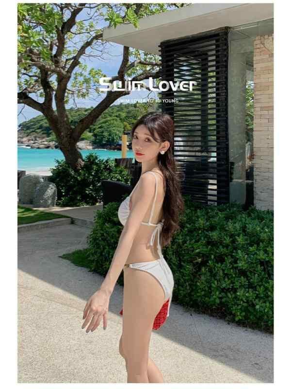 水着 レディース スリーピース ビキニ ヘルシーセクシー 夏 バックレス ストラップ ノンワイヤー 胸パッド付き ポリエステル 高伸縮性 ホワイト ブラック 三角パンツ