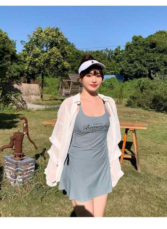 水着 レディース 大きいサイズ セパレート スリーピース セット 長袖 体型カバー ぽっちゃり お腹カバー スポーティ 露出控えめ ショートパンツ 温泉 水泳 プール 海 レジャー ポリエステル 胸パッド付き ノンワイヤー 無地 グレー ブルー