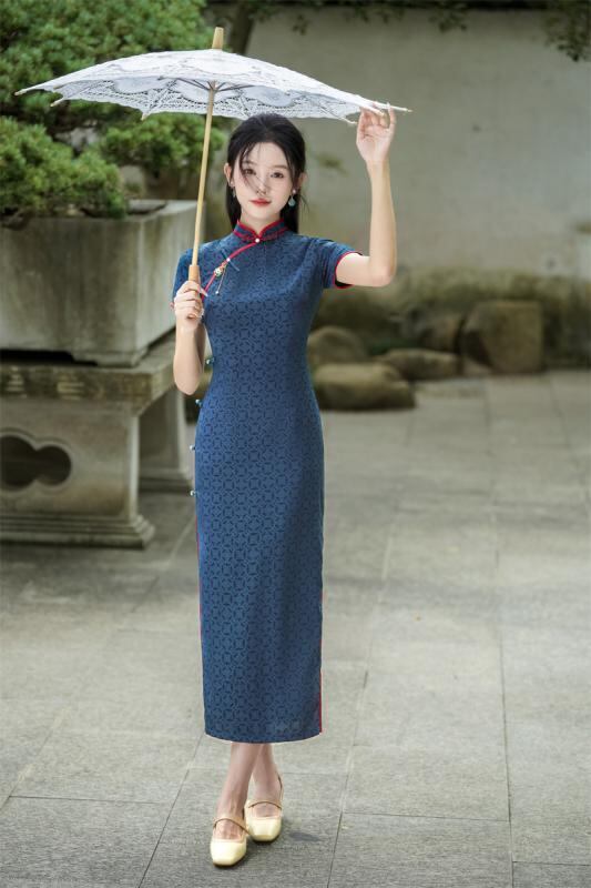 チャイナドレス レディース 半袖 ロング丈 レトロ 中華風 改良型 春夏 ポリエステル ストレッチ 上品 エレガント パーティー 結婚式 フォーマル お呼ばれ