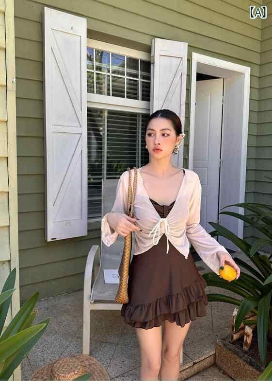 ・カテゴリ: ワンピース水着・対象: 女性・対象年齢: 成人・柄: 無地・パッド: 胸パッドあり、ノンワイヤー・主な素材: ナイロン75%・重さ: 約450g・裏地素材: ポリエステル82%・適用シーン: ランニング、フィットネス、水泳・カラー展開: コーヒー、ブラック・サイズ展開: L、XL、XXL、XXXL、4XL、5XL・袖丈: 長袖