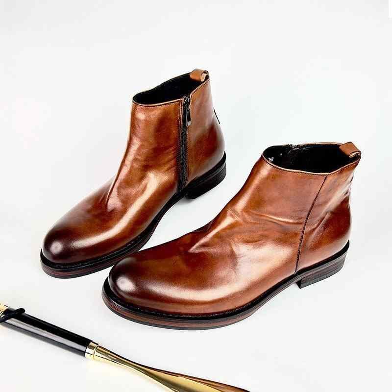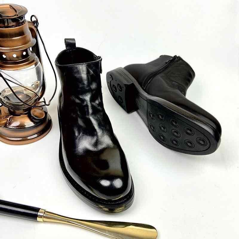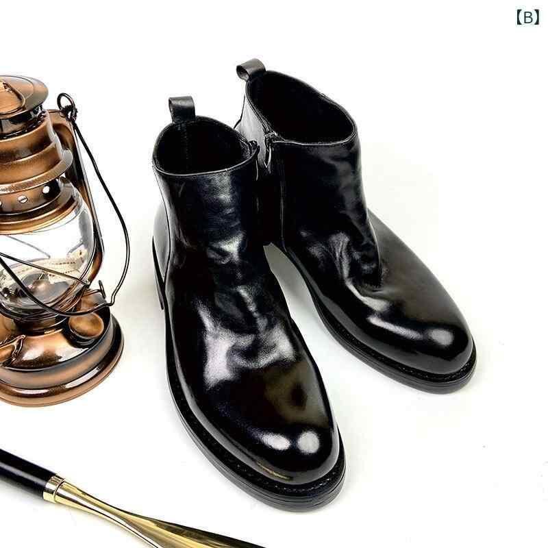 紳士靴 チェルシーブーツ メンズ 英国風 レトロ ホースレザー ミドル丈 太ヒール グッドイヤーウェルト製法 ウォッシュ加工 サイドジップ 本革ソール レザー裏地 防滑 レザー切り替え ビジネス カジュアル ブラック コーヒーブラウン