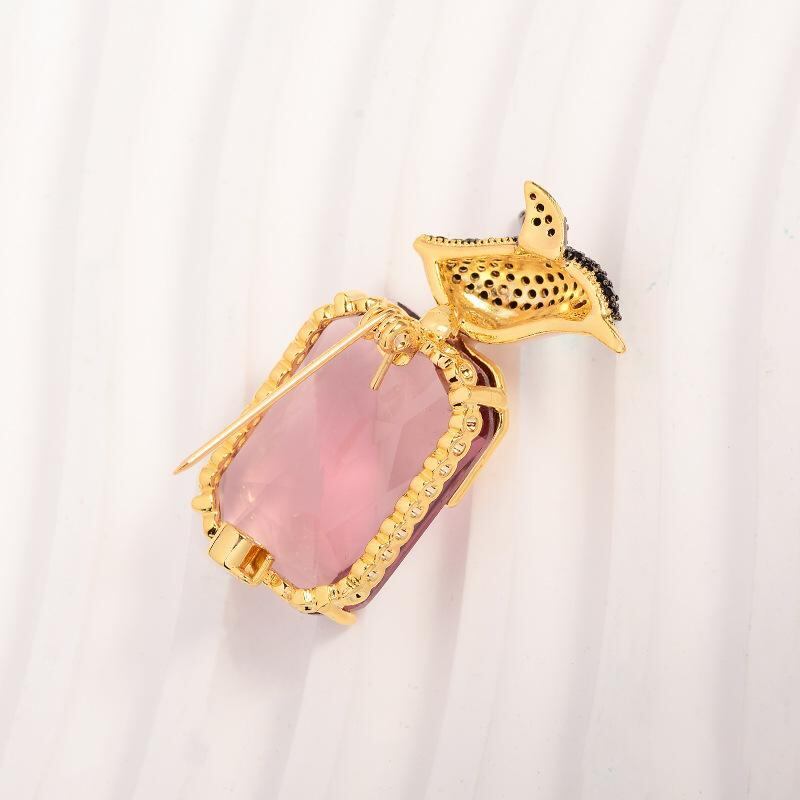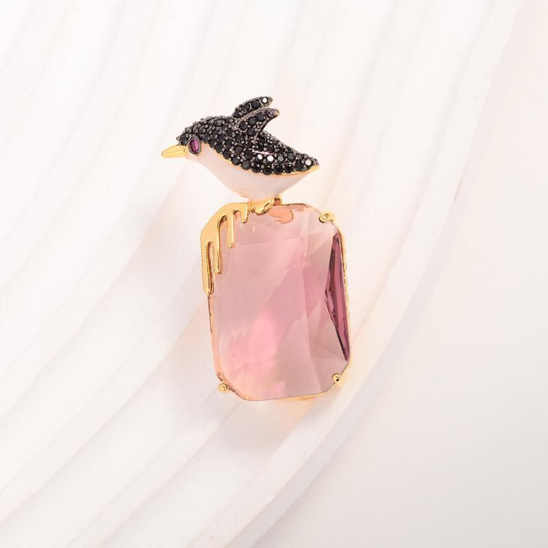 ブローチ レディース 女性用 小鳥 動物モチーフ 幾何学デザイン ジルコニア 銅製 電気メッキ加工 高級感 精巧 上品 エレガント ファッション オフィス 普段使い 秋冬 アクセサリー 装飾品 紫色